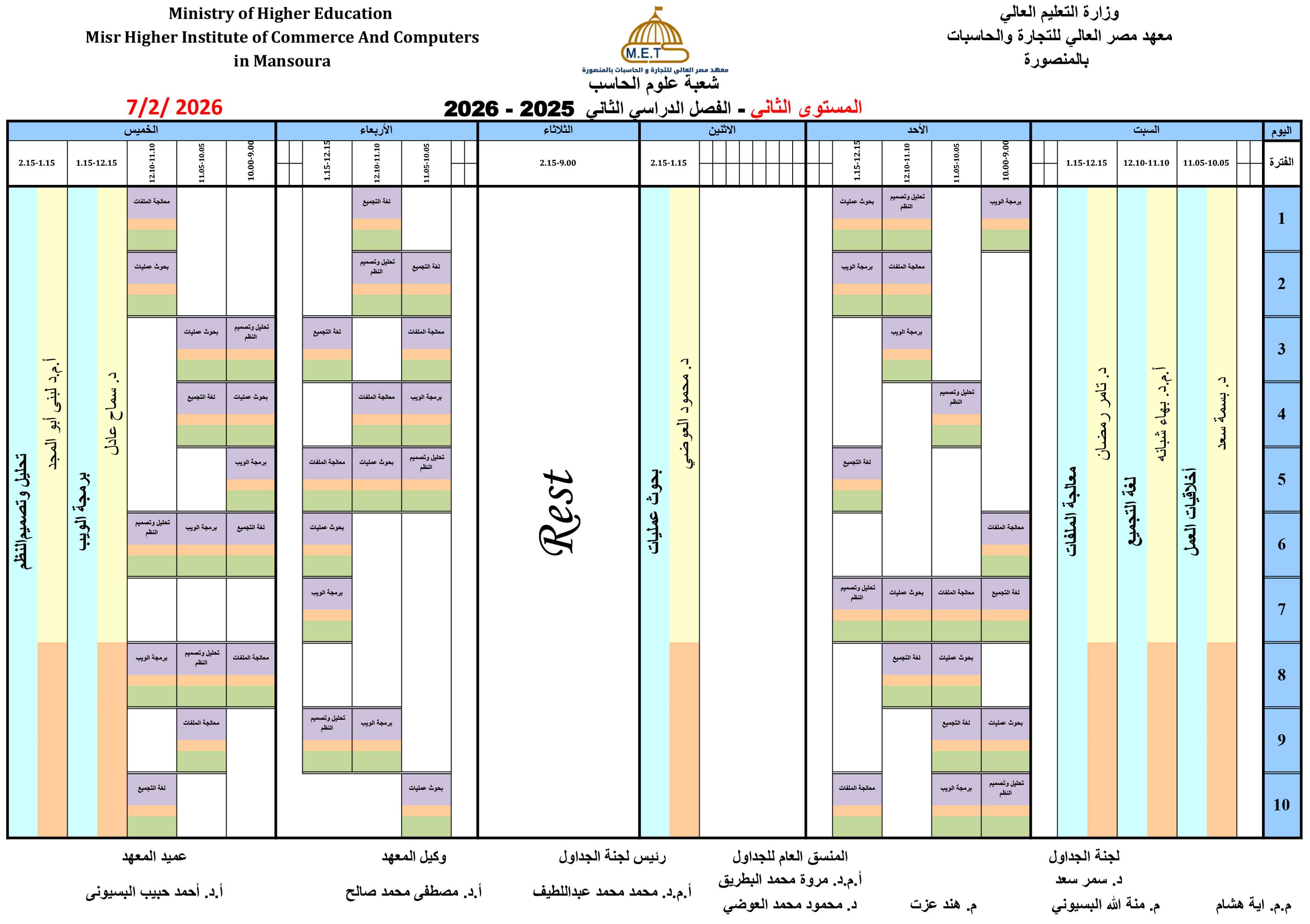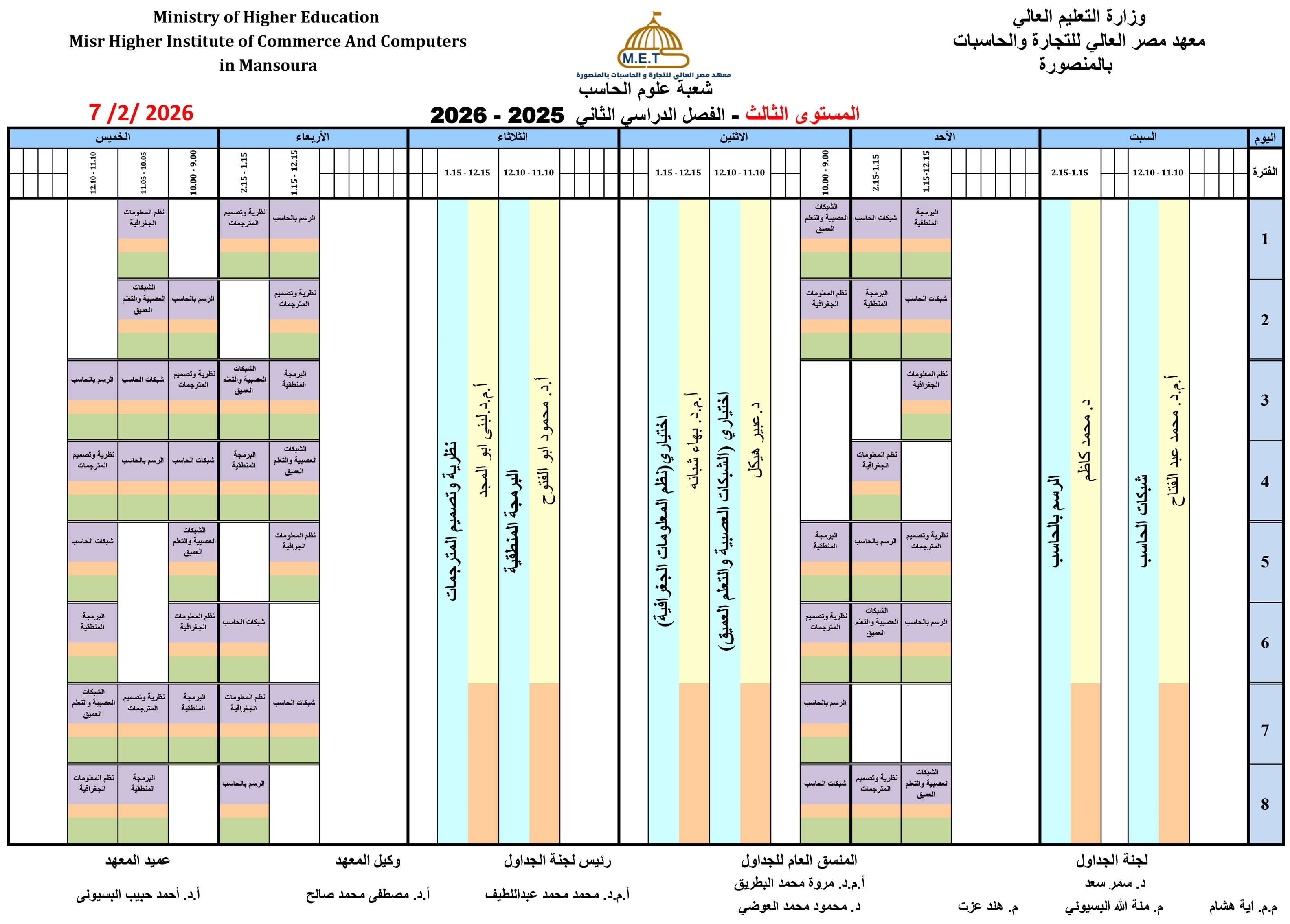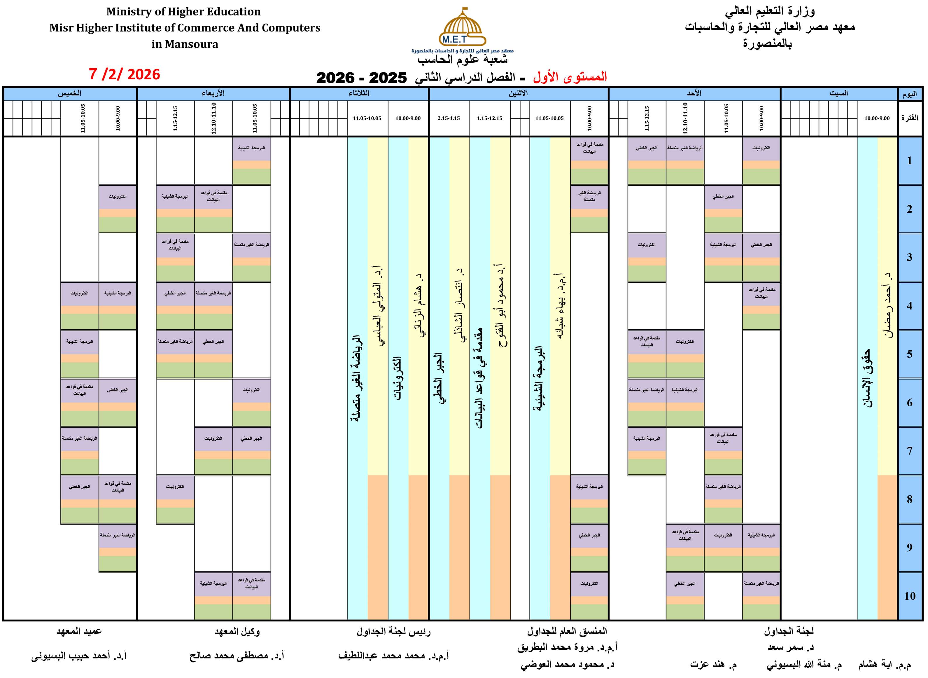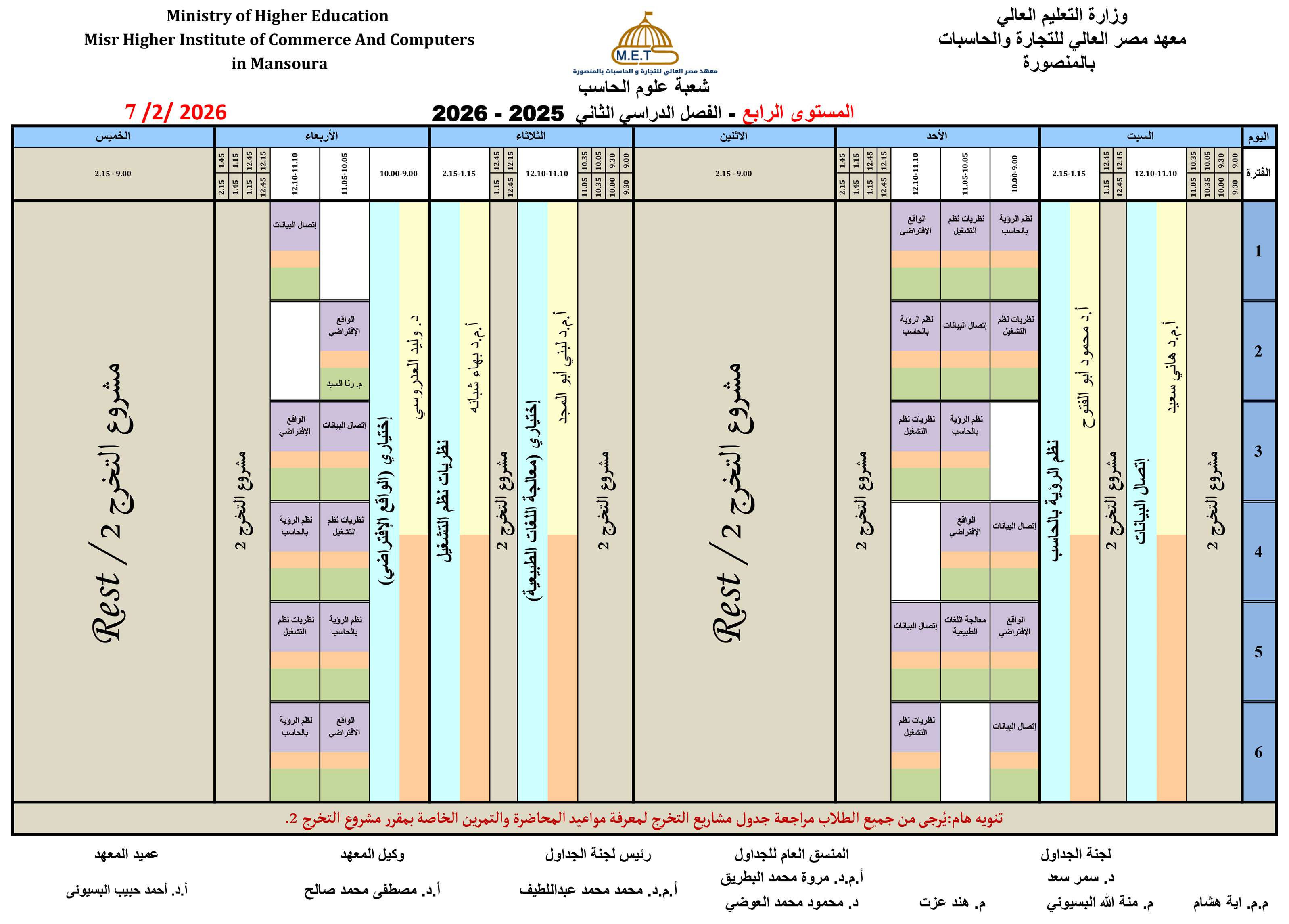 الجداول الدراسية الفصل الدراسي الثانى 2025-2026